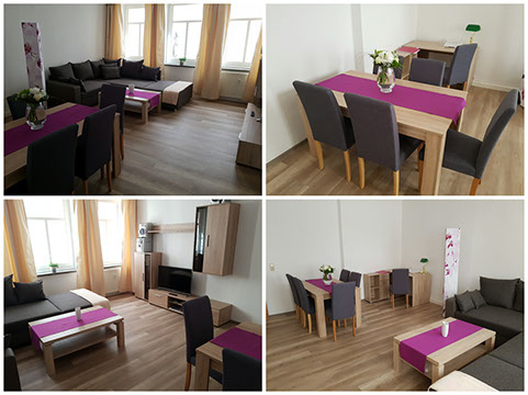 Wohnzimmer: 22qm ausgestattet mit Schlafsofa, Schreibtisch, Esstisch, Radio/CD und Kabel-TV