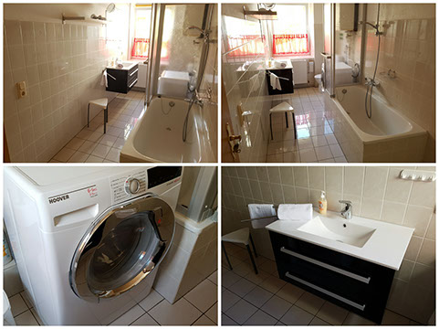 Bad: 8qm Badewannen / Duschkombi, WC, Waschtrockner, Fön und Bügeleisen
