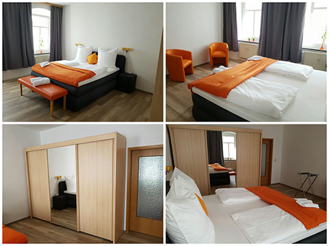Schlafzimmer: 22qm Boxspringbett, 3türiger Kleiderschrank Sitzgelegenheiten und Kofferständer